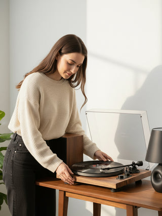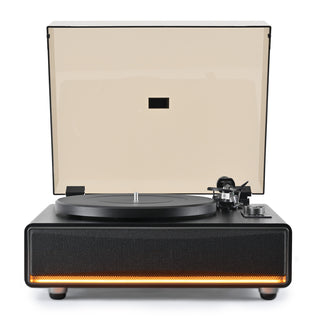 Focus on vintage aesthetics and all-in-one design, these all-in-one turntables are designed to be a beautiful centerpiece in any room, from a small apartment to a spacious living area. Features powerful, integrated stereo speakers, eliminating the need for separate components.