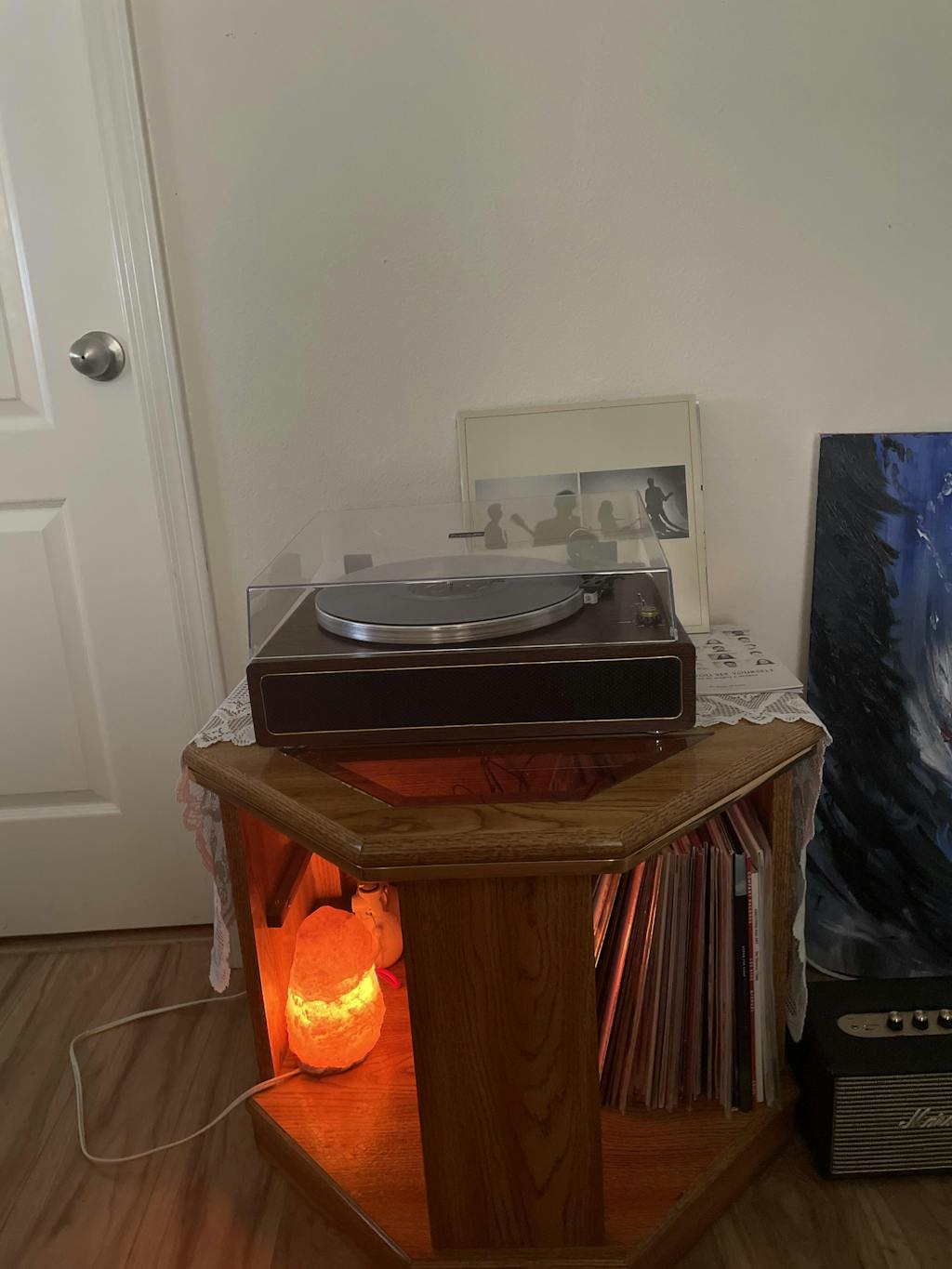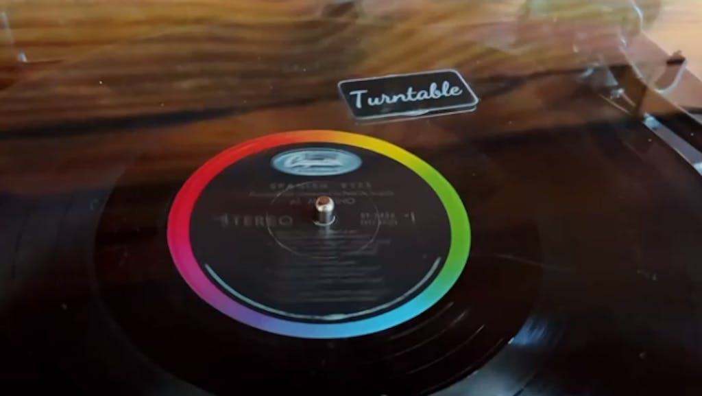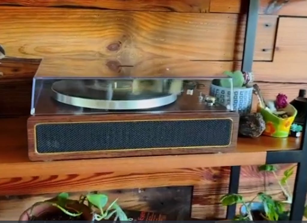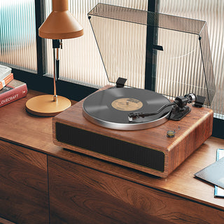 Turntable + amp + speaker in one. Clean design. Big sound.