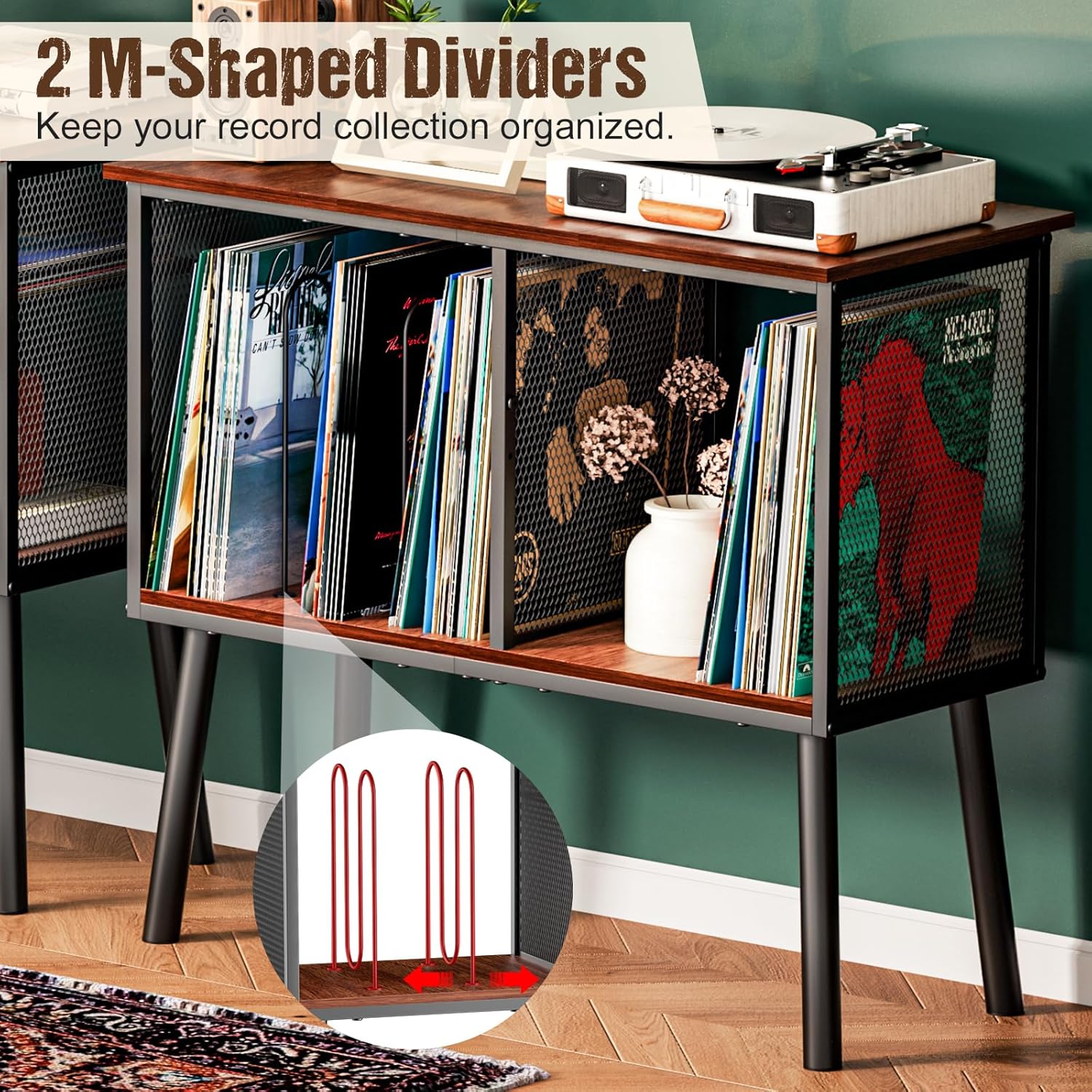 This vinyl record stand includes three storage compartments, capable of holding up to 200 records. It provides ample space for your albums, vinyls, and CDs, making it easy to organize and access your collection.Adjustable Divider Height