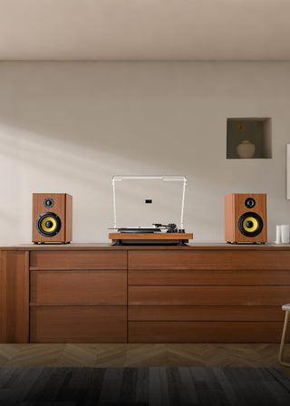 Equipped with a self-developed motor and belt drive, maintaining ±0.1% RPM accuracy at 33/45 speeds. Delivers low-vibration, high-fidelity vinyl playback.