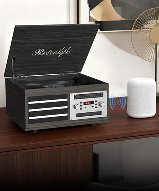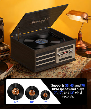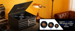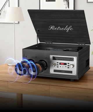 Equipped with dual full-range speakers powered by Hi-Fi circuitry, this turntable reproduces music with studio-grade accuracy. Advanced chip technology ensures true-to-source sound with ultra-low distortion across all frequencies.