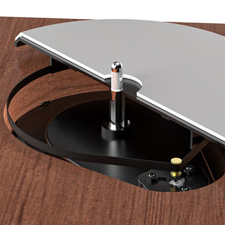 This turntable features a precision-engineered tonearm with an adjustable counterweight, allowing optimal tracking force across the entire record surface. With careful force distribution (F), it achieves a distortion rate of ≤0.8%, faithfully preserving every detail of your music.