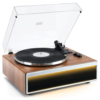 They are supports both 33 and 45 RPM speeds, ensuring smooth playback of your entire vinyl collection. With Bluetooth input or output, you can stream music wirelessly or connect to your favorite speakers and headphones with ease. Enjoy the convenience of auto-stop functionality that protects your records, and USB recording that lets you digitize your vinyl and take your analog sound wherever you go. Whether you're spinning classics or discovering new artists, our turntables combine vintage style with modern performance for an effortless listening experience.