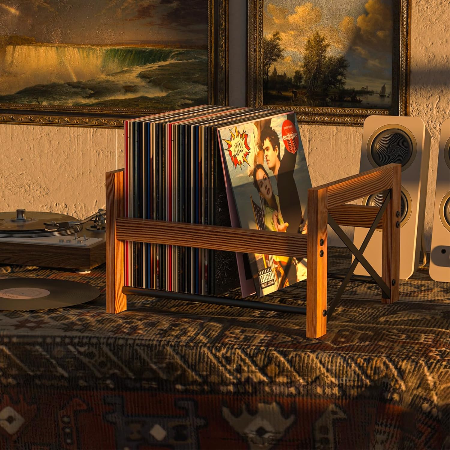 Quick and easy setup with included instructions and a few screws. (Vinyl records and sleeves not included.)Specifications
