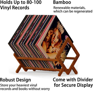 The rack is designed to fit standard 12-inch vinyl records and can also accommodate 7-inch and 10-inch records.